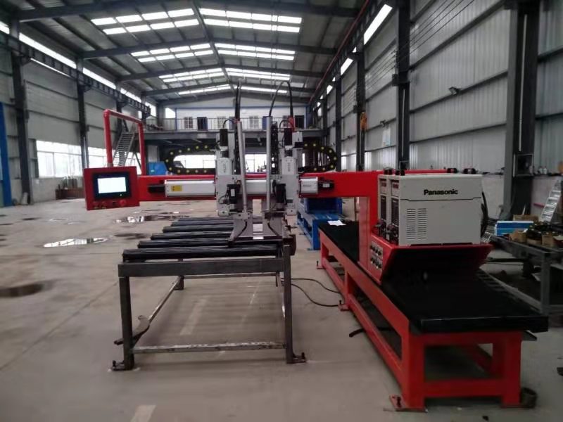 掛車生產(chǎn)過程中,車廂門因量大、工序復(fù)雜、焊接難度高,制約著生產(chǎn)產(chǎn)量。金瑞公司在原單槍焊接工藝基礎(chǔ)上,研發(fā)出雙槍自動化焊接設(shè)備。該設(shè)備立足于自動化生產(chǎn)線布置,從起槍、焊接、旋轉(zhuǎn)、收槍、回位,實行全自動編程控制,一臺設(shè)備相當于兩臺設(shè)備生產(chǎn)效率,避免了焊接生產(chǎn)中活件翻轉(zhuǎn)工序,勞動效率提高兩倍以上。